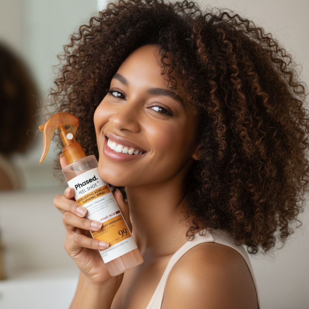 "I struggled with dark spots and texture on my face and neck for years. After 6 weeks of using Phased, my skin is glowing!! It FINALLY feels smooth and soft. This spray is like magic in a bottle!!"