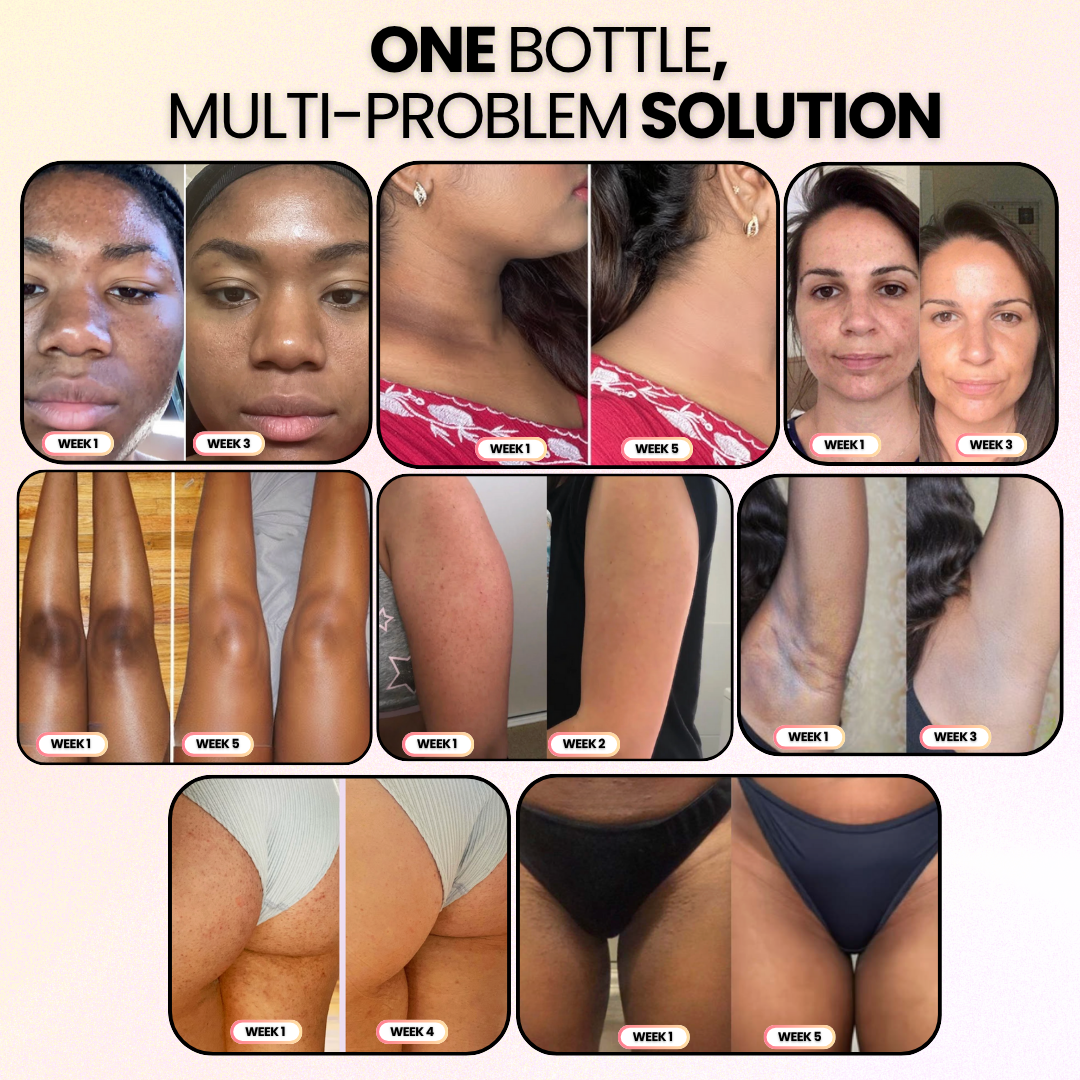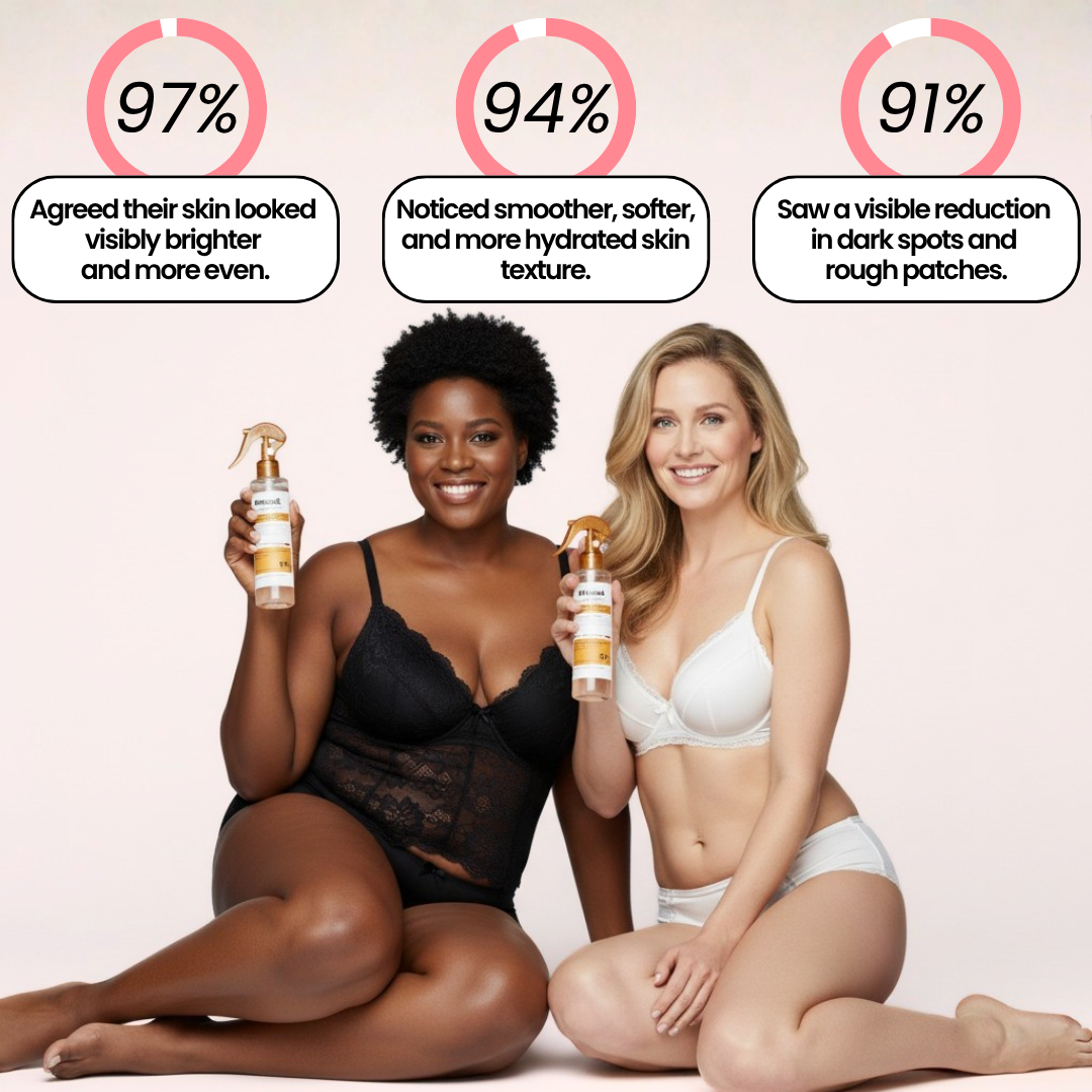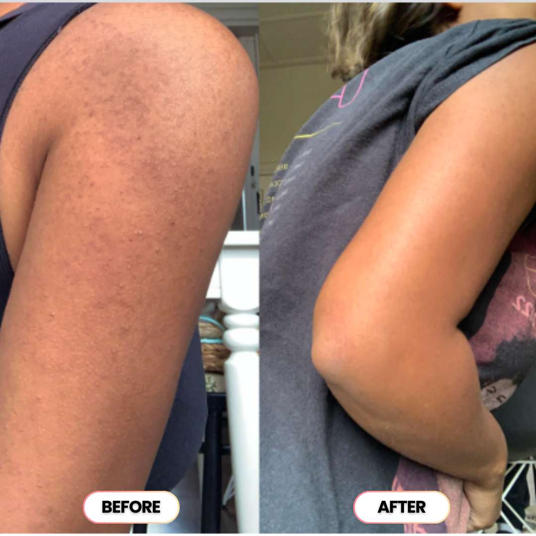 Dark patches and bumps are gone, your skin looks balanced and radiant. You're glowing naturally from head to toe, no filters or cover-ups needed.