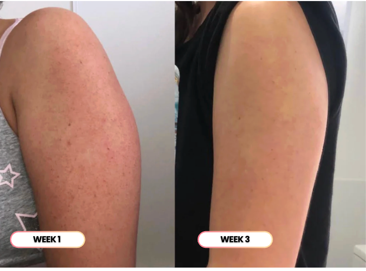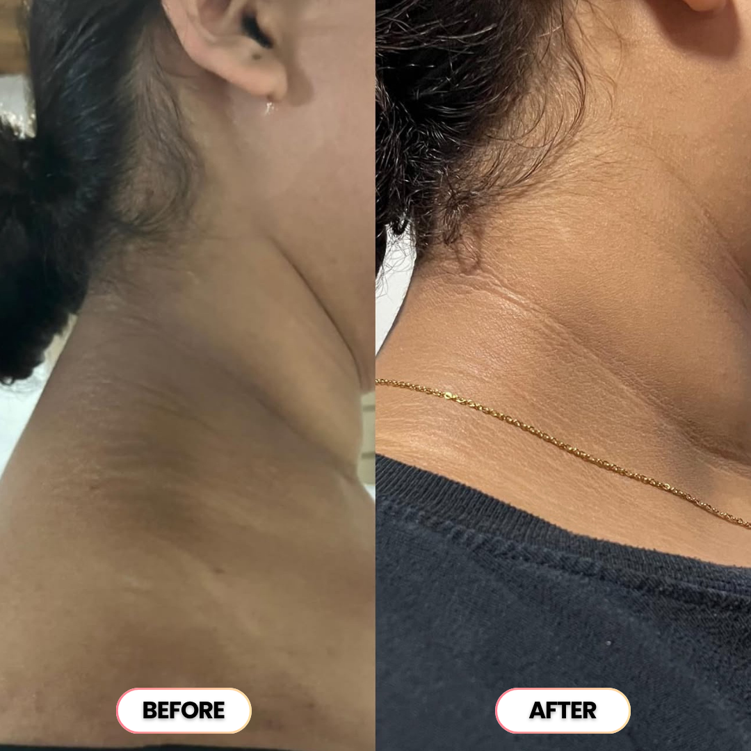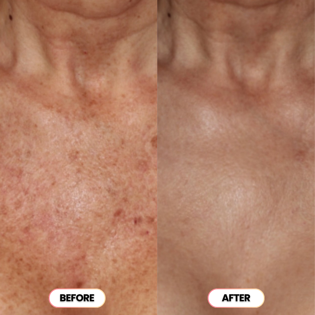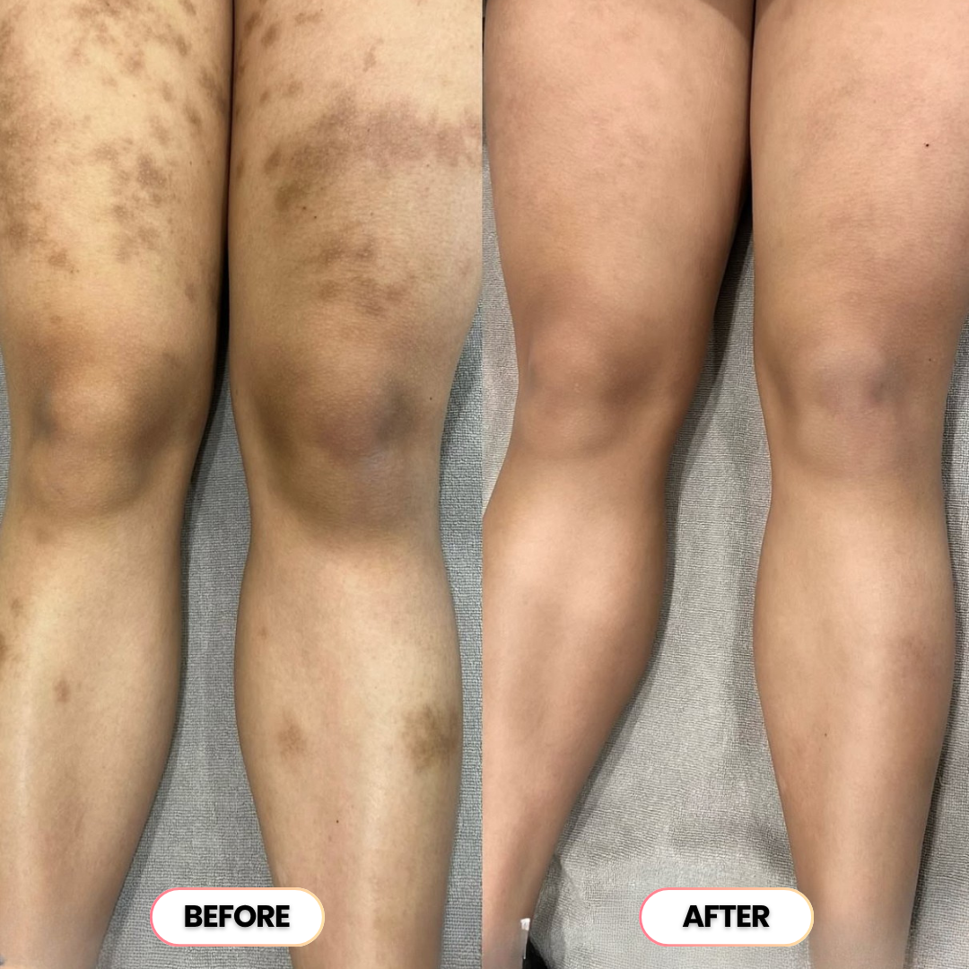 Dark patches and bumps are gone, your skin looks balanced and radiant. You're glowing naturally from head to toe, no filters or cover-ups needed.